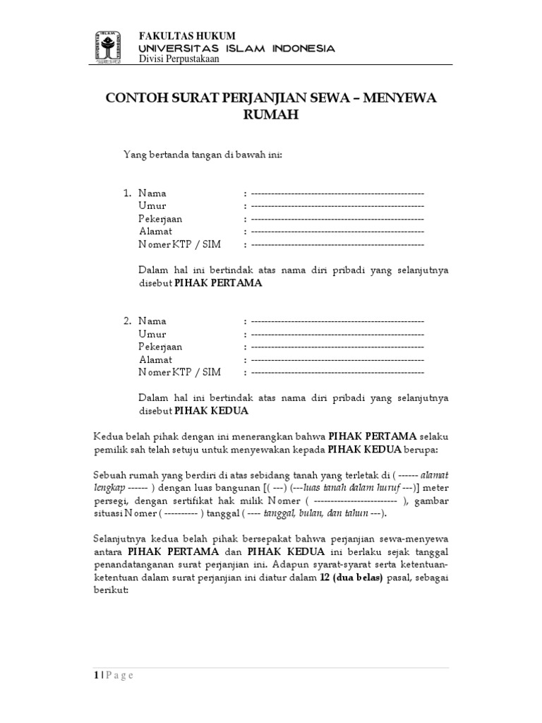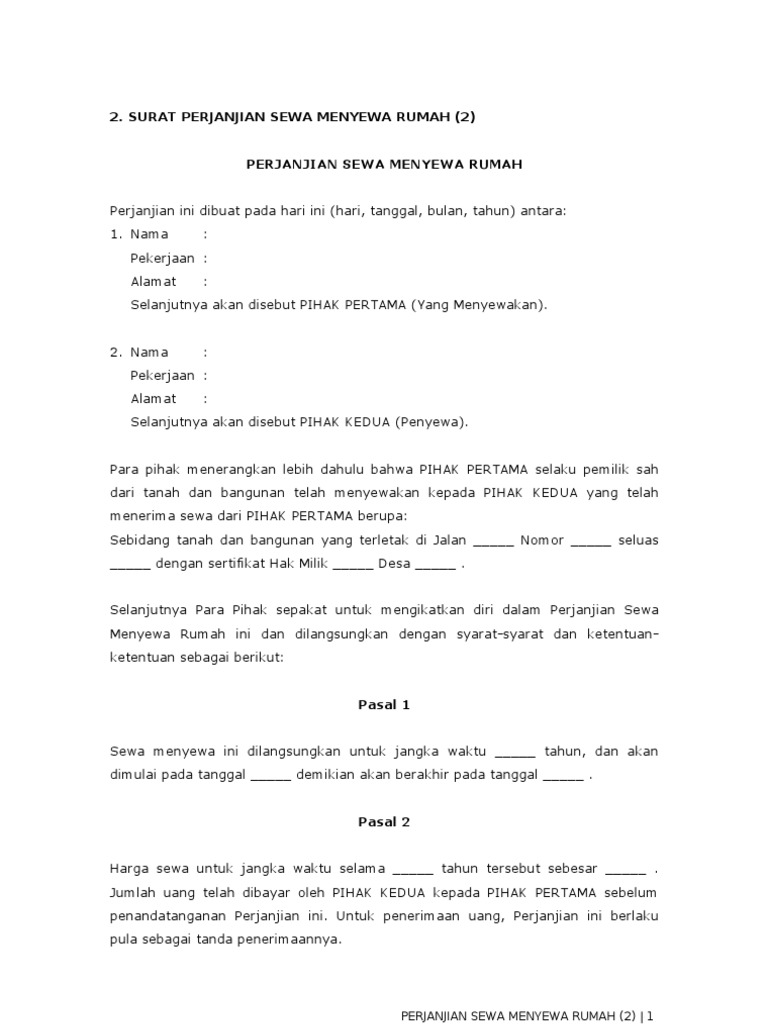 Surat Perjanjian Sewa Menyewa Rumah Pdf