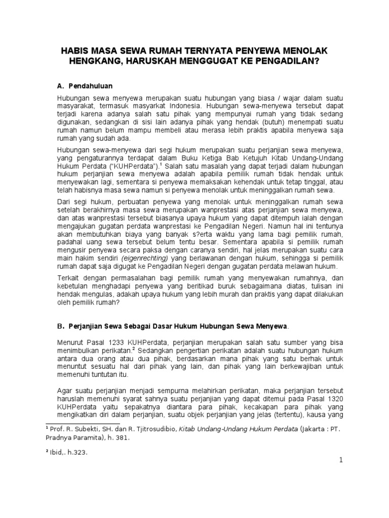 Habis Masa Sewa Penyewa Menolak Hengkang Haruskah Menggugat Pdf